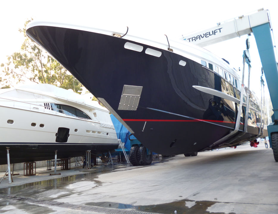 Teknenin dış yüzeyinde komple boya işlemi yapıldı.